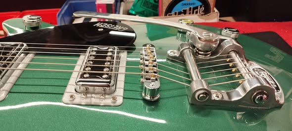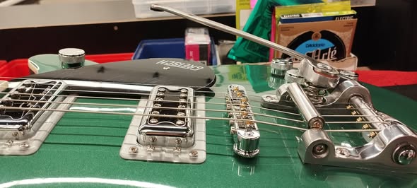 Équipée d’un Bigsby, le problème est bien connu : elle était complètement désaccordée. Mais il existe des solutions vraiment efficaces.